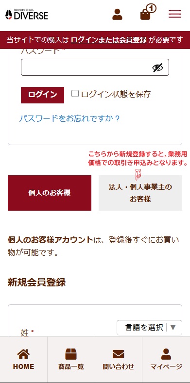 業務用卸価格(法人・個人事業主様向け)アカウントの登録について